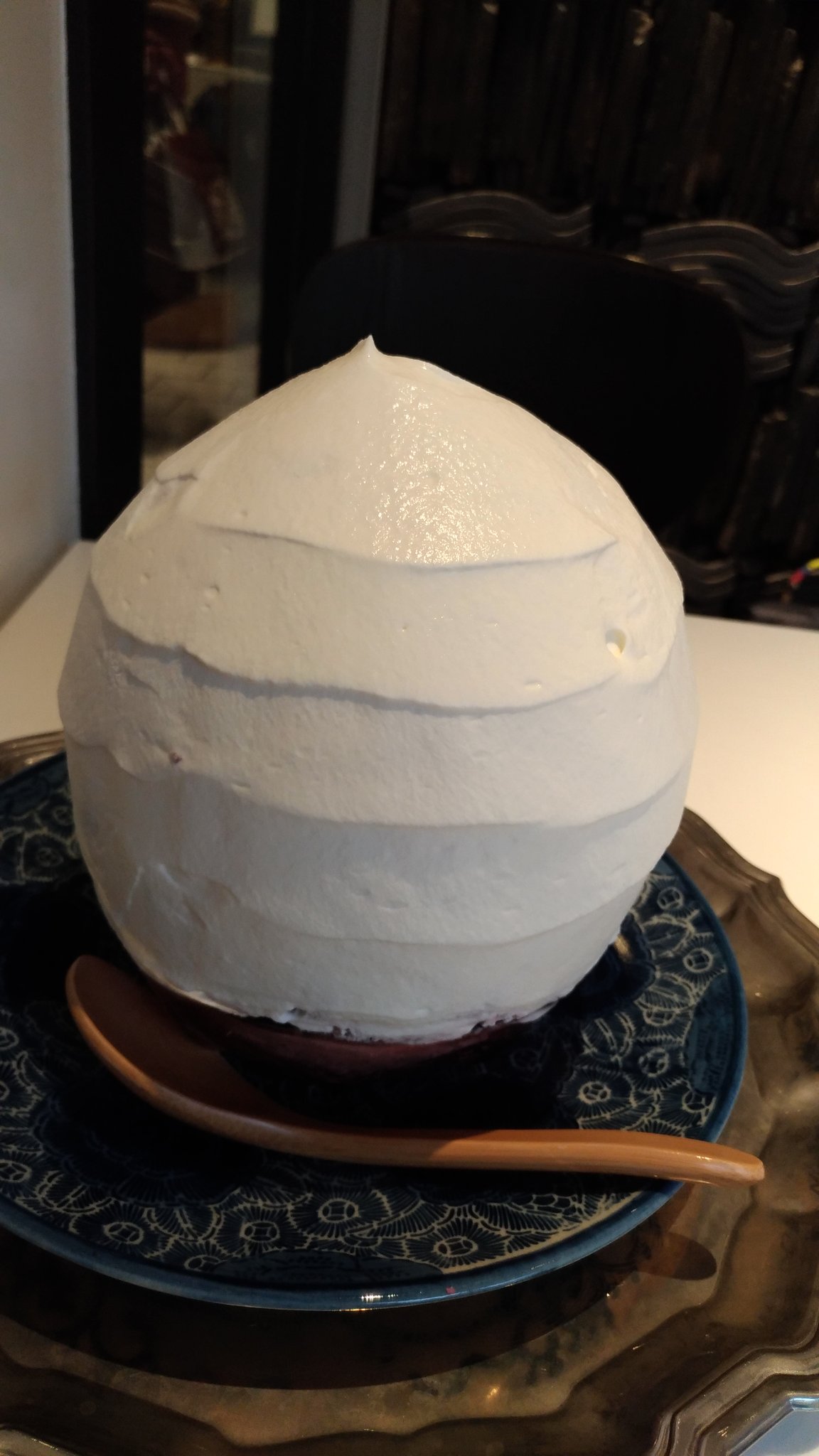 京都府京都市祇園にある『お茶とお酒 たすき』の12月限定かき氷ベリーベリーホワイトです。