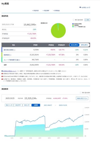 10月末時点で総入金額は1,251万円となっています。投資の元金は労働からの貯蓄+セクハラ慰謝料+IPO利益です。